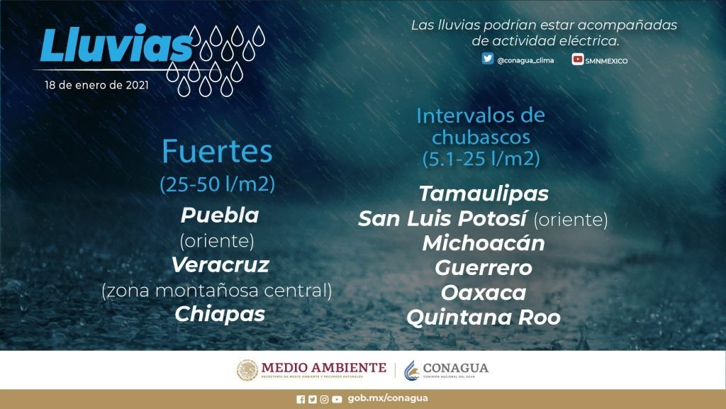 Pronóstico de precipitación para hoy 18 de enero de 2021: