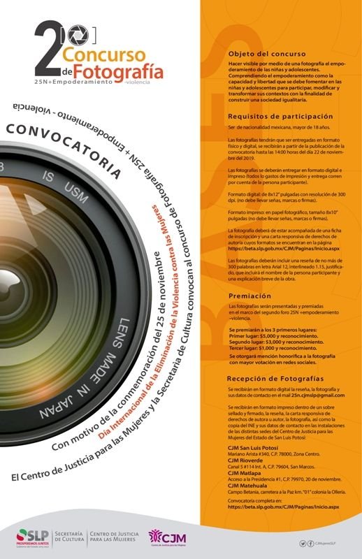 CJM y Secretaría de Cultura anuncian concurso de fotografía 25NLife / Por El Portal SLP / 02/11/2019 CJM y Secretaría de Cultura anuncian concurso de fotografía 25N Leer más