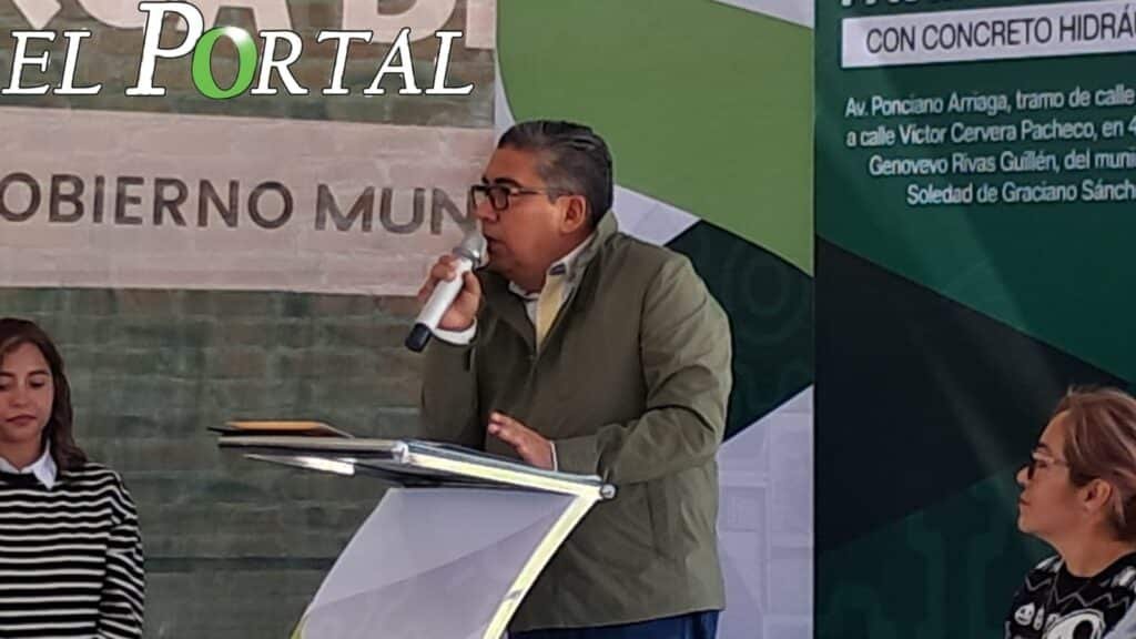 Soledad de Graciano Sánchez, S.L.P. (El Portal). – El Alcalde Navarro, dio inicio a los trabajos de pavimentación para la ampliación de la Av. Ponciano Arriaga.