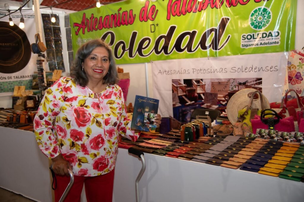 Leonor Noyola dijo que el stand de Soledad de Graciano Sánchez hay talento expreso, mismo que puede ser adquirido en un horario de las 12 del día a 12 de la noche, en los locales con numeración 87, 88, 89 y 93 donde las personas pueden comprar artículos diversos desde 30 pesos, lo que representa la facilidad y el apoyo otorgado a la promoción del municipio.