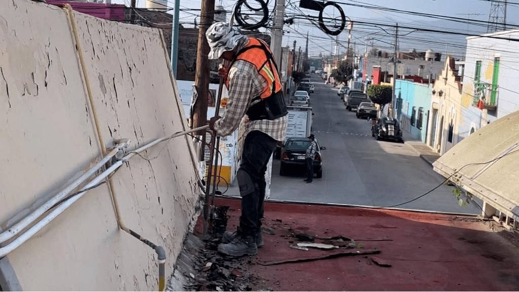 En el Mercado Revolución, ubicado en la colonia San Luis, se realizaron las siguientes acciones de mejora: mantenimiento correctivo en bajadas pluviales interiores para su ajuste y sellado hermético, mantenimiento preventivo y correctivo en áreas dañadas de azoteas y evitar el deterioro prematuro de impermeabilizante, suministro de focos de 350 watts mogul para sustituir luminarias dañadas en el edificio.