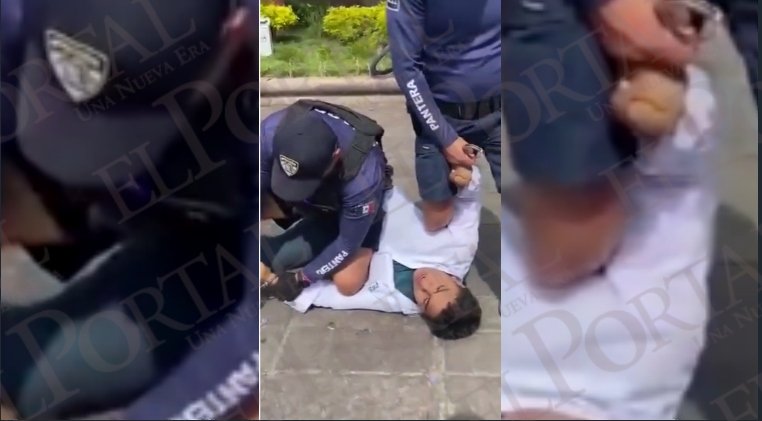 En el video, que rápidamente generó reacciones entre usuarios, se observa el momento en que el joven es retenido por los elementos policiales, lo que provocó inconformidad entre los testigos presentes.