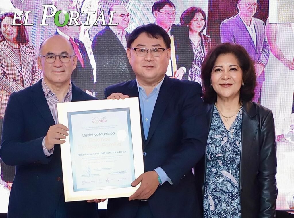 San Luis Potosí, S.L.P. (El Portal).- El Ayuntamiento de San Luis Potosí y el Sistema Municipal DIF entregaron la tercera edición del Distintivo Balance Trabajo–Familia, un reconocimiento a 46 empresas que han adoptado prácticas laborales orientadas a fortalecer el bienestar integral de sus trabajadores. El acto fue encabezado por el alcalde Enrique Galindo Ceballos, la presidenta del DIF Municipal, Estela Arriaga Márquez, y representantes del sector empresarial.