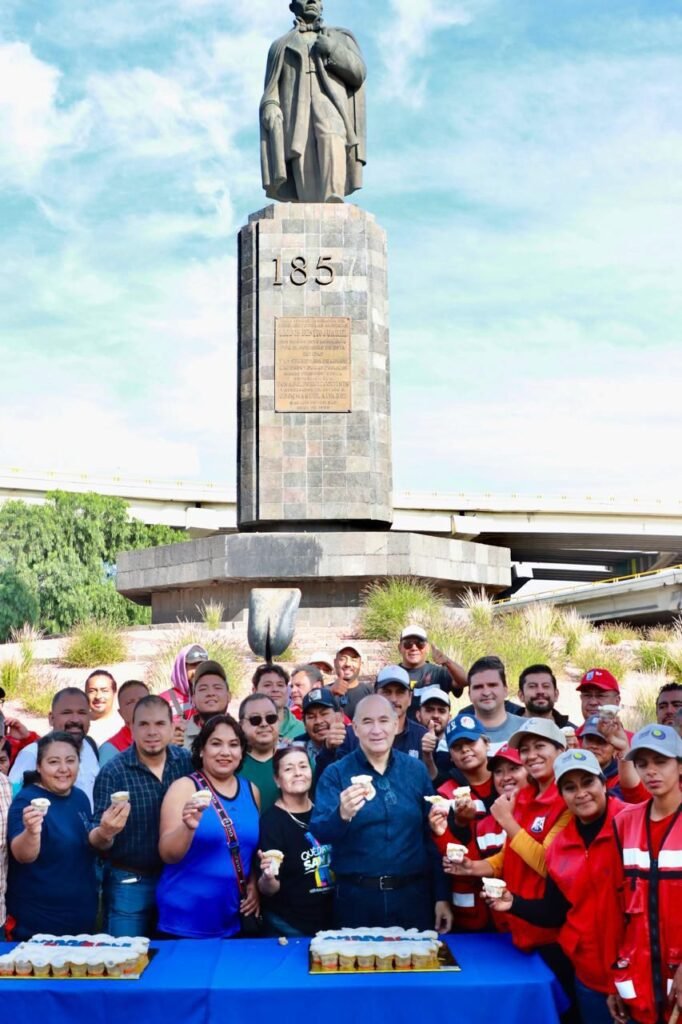 El Alcalde Enrique Galindo señaló que el propósito del Día de Talacha es recuperar los espacios públicos, como camellones, parques, jardines, monumentos históricos, “y que bueno que decidimos que haya sido aquí porque este es uno de los monumentos más bonitos, también del escultor Joaquín Arias”.