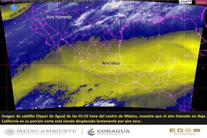 Se prevé marcado descenso de temperatura y nevadas y/o aguanieve en zonas serranas de Baja California, Sonora y Chihuahua; temperaturas menores a -5 grados Celsius y posibles heladas en montañas de Baja California, Chihuahua y Durango; de -5 a 0 grados Celsius y heladas en cordilleras de Sonora, Zacatecas, Estado de México, Ciudad de México, Tlaxcala, Hidalgo, Puebla y Veracruz, así como de 0 a 5 grados Celsius en cerros de Coahuila, Nuevo León, San Luis Potosí, Jalisco, Michoacán, Guanajuato, Morelos y Oaxaca.