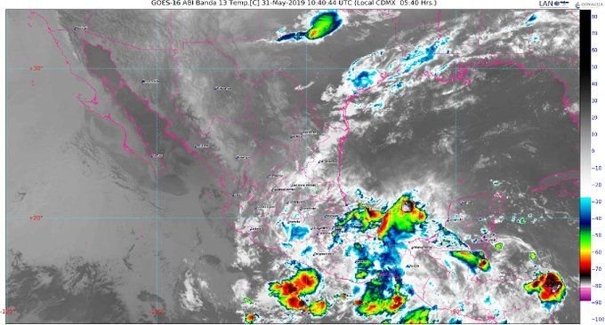 Para las próximas horas es de tormentas torrenciales en Oaxaca y Chiapas, tormentas intensas en Guerrero, Veracruz y Tabasco, muy fuertes en Puebla, Campeche y Yucatán, fuertes en Chihuahua, Coahuila, Michoacán, Estado de México, Morelos y Quintana Roo, intervalos de chubascos en Nuevo León, Tamaulipas, San Luis Potosí, Durango, Jalisco, Colima, Ciudad de México, Tlaxcala e Hidalgo, y lluvias aisladas en Zacatecas, Nayarit, Guanajuato y Querétaro.