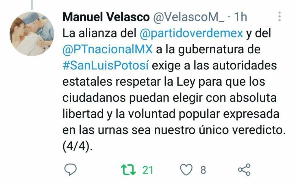 Verde y PT Nacionales denunciarán intromisión del Estado en la Eleccion a GobernadorPortada, Procesos Electorales SLP 2024 / Por El Portal / 20/04/2021 Verde y PT Nacionales denunciarán intromisión del Estado en la Eleccion a Gobernador Leer más