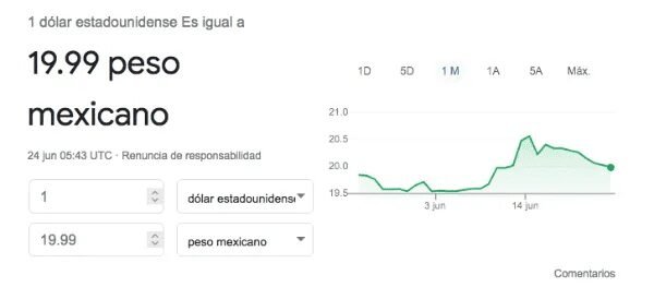 El precio del dólar estadounidense cotiza este viernes 24 de junio en un promedio de 19.99 la venta y se compra en 19.98 en casas de cambio ubicadas en el Aeropuerto Internacional “Benito Juárez” de la Ciudad de México.