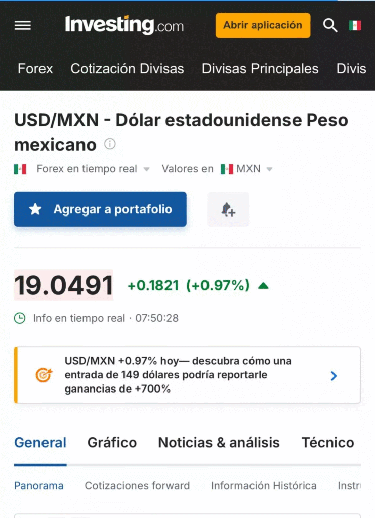 El día de hoy viernes 13 de junio del 2025. Empezamos el día con un cambio de divisa retomando la barrera de los $19, dando como resultado que el precio del dólar hoy sea de $19.09 según la Google Economics.