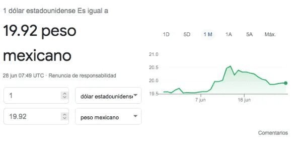 El dólar estadounidense cotiza este martes 28 de junio en un promedio de 19.92 la venta y se compra en 19.91 en casas de cambio ubicadas en el Aeropuerto Internacional “Benito Juárez” de la Ciudad de México.
