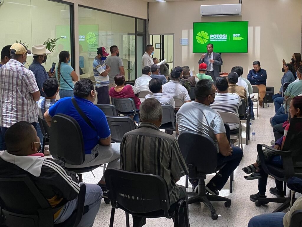 En apego a la instrucción del Gobernador del Estado Ricardo Gallardo Cardona, de ofrecer un gobierno abierto y atento para todas y todos, el titular de la Secretaría de Comunicaciones y Transportes (SCT), Leonel Serrato Sánchez atendió las inquietudes de integrantes del gremio taxista de la zona Huasteca.