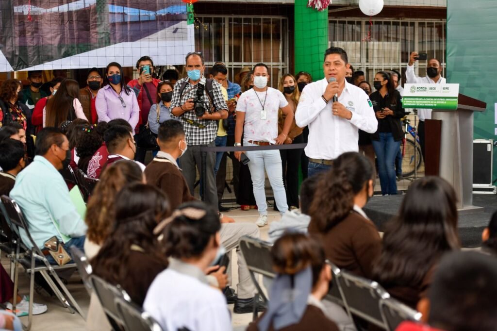 “Les hice una promesa hace tiempo, les dije que a esta escuela la íbamos a dejar nueva y estamos cumpliendo”, expresó el Gobernador potosino, quien se comprometió a rehabilitar la pintura y baños e instalar Internet gratuito para un mayor aprovechamiento escolar de las y los jóvenes.
