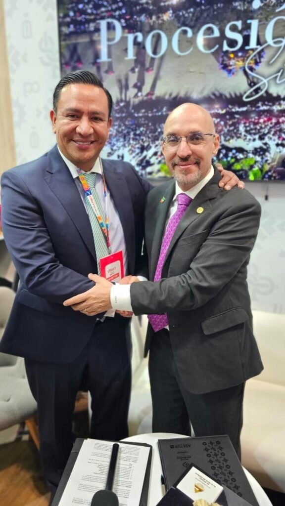 La firma se realizó durante la Feria Internacional de Turismo (FITUR) 2026, con la participación del secretario general de Gobierno, J. Guadalupe Torres Sánchez, como testigo de honor, junto al presidente de Concanaco Servytur México, Octavio de la Torre de Steffano, la secretaria de Turismo estatal, Yolanda Josefina Cepeda Echeverría, y Gerardo Charur Bendeck, presidente de la Cámara Nacional de Comercio, Servicios y Turismo de la Huasteca Potosina.