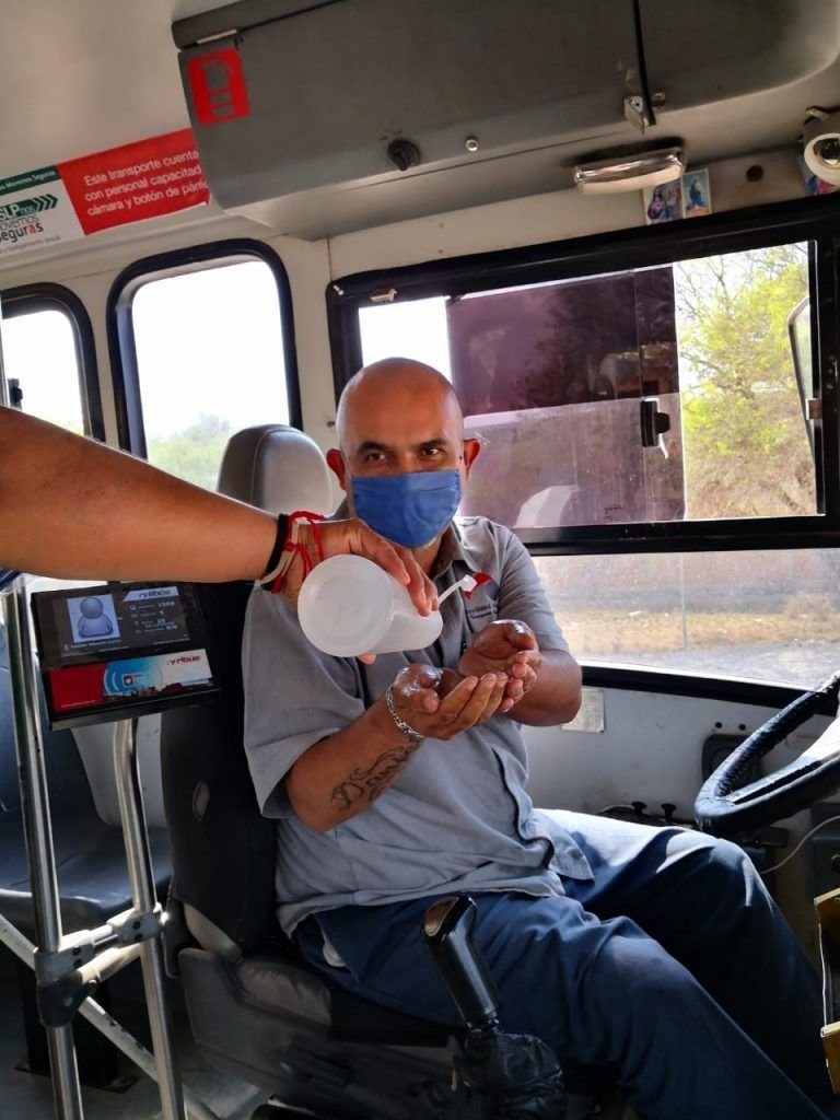 Para quienes aún tienen la necesidad de utilizar el servicio de transporte público, la Secretaría de Comunicaciones y Transportes ha proporcionado cloro y gel para la sanitización de las unidades y colocado carteles informativos dirigidos a usuarios y operadores para que estén informados de las medidas de prevención de contagio dispuestas por la Secretaría de Salud.