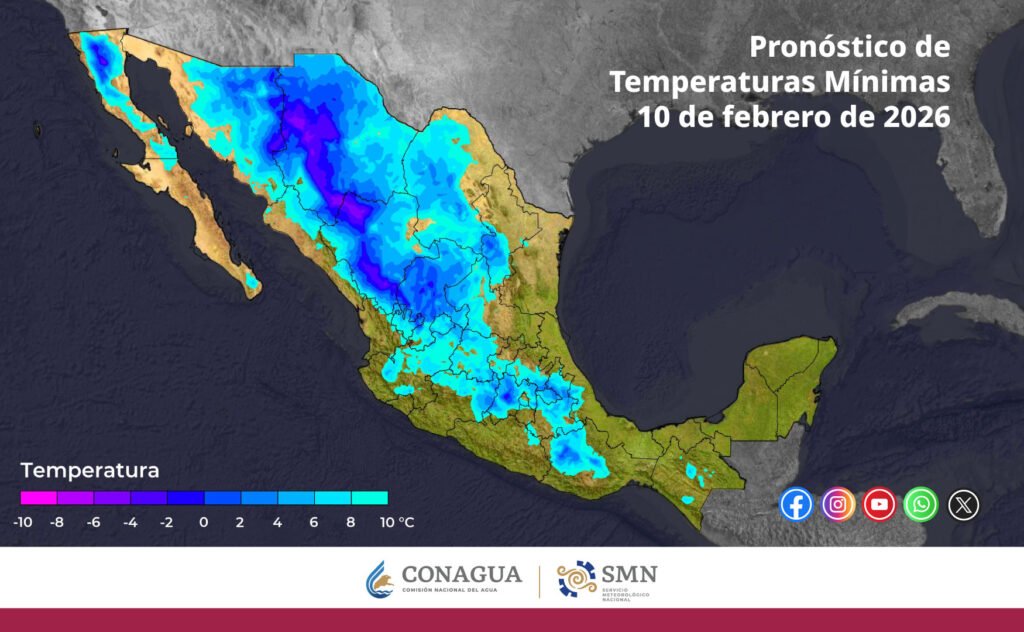 Pronóstico de temperaturas mínimas para hoy 10 de febrero de 2026: