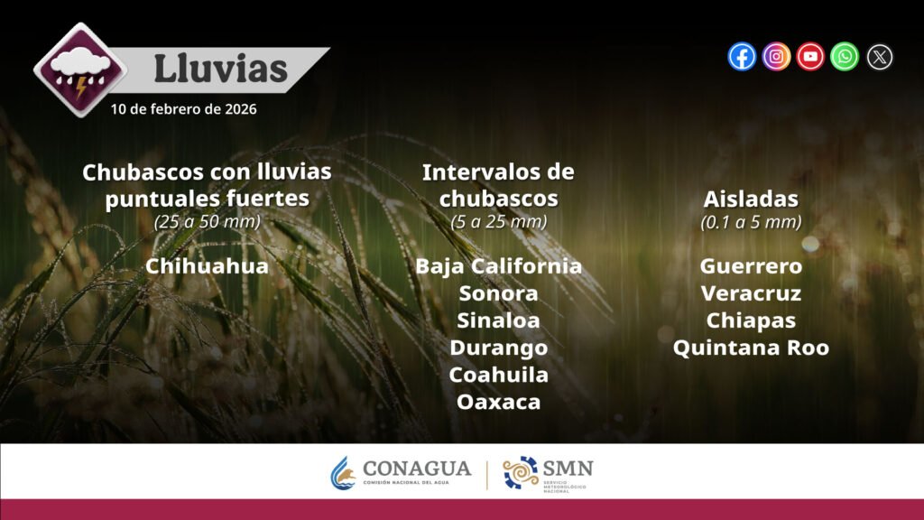 Pronóstico de lluvias para hoy 10 de febrero de 2026: