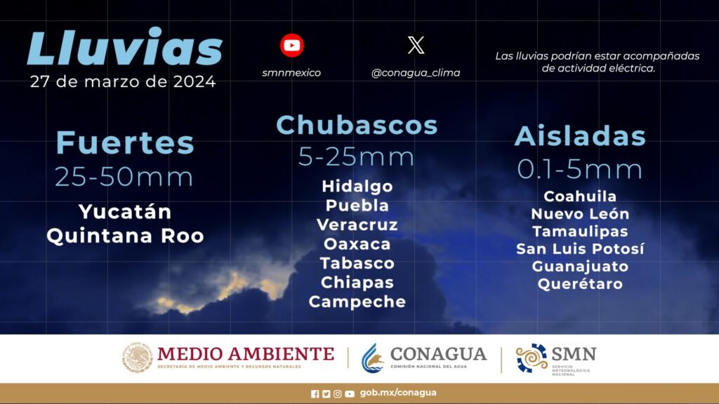 Pronóstico de lluvias para hoy 27 de marzo de 2024: