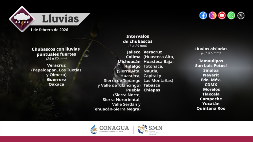 Pronóstico de lluvias para hoy 02 de febrero de 2026: