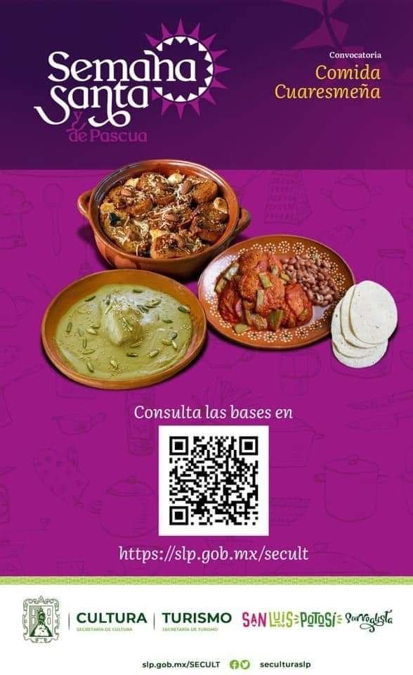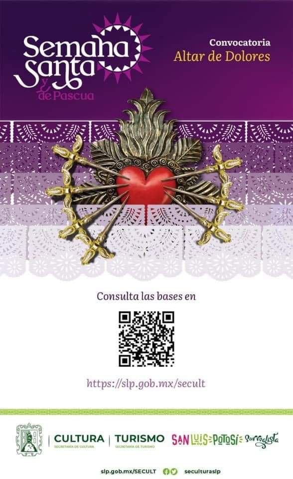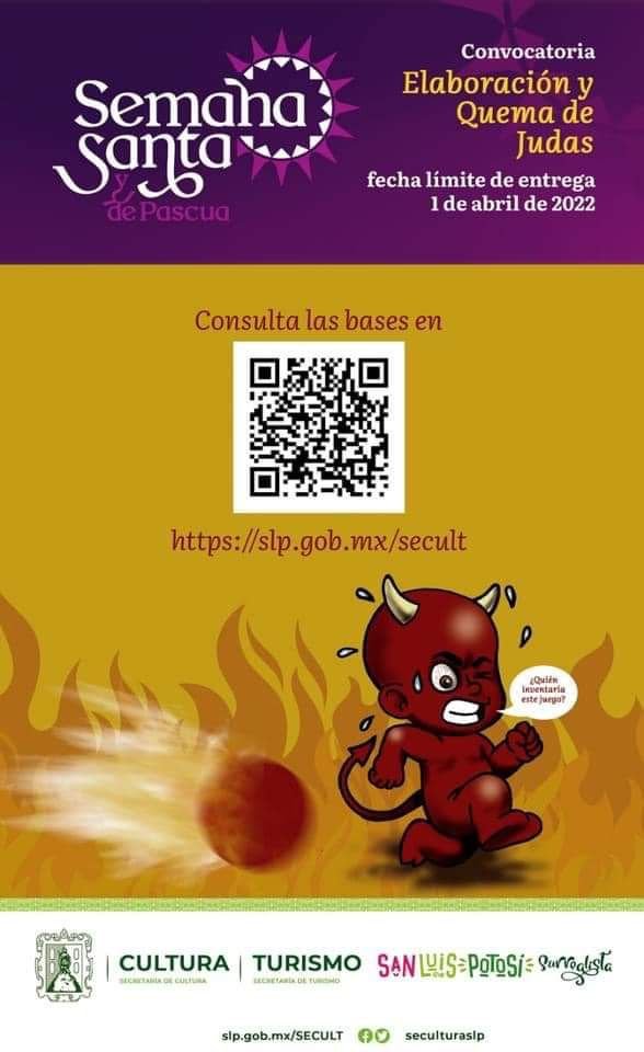 Por ello, y ante la llegada de la temporada de Semana Santa y Pascua, la dependencia invita a la población en general a participar en concursos que buscan el objetivo de fortalecer y preservar las identidades culturales y tradiciones del pueblo potosino: concurso de Altares de Dolores, Comida Cuaresmeña, Danzón, y Elaboración y quema de Judas.