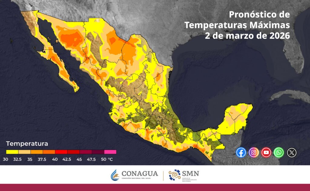Pronóstico de temperaturas máximas para hoy 03 de marzo de 2026: