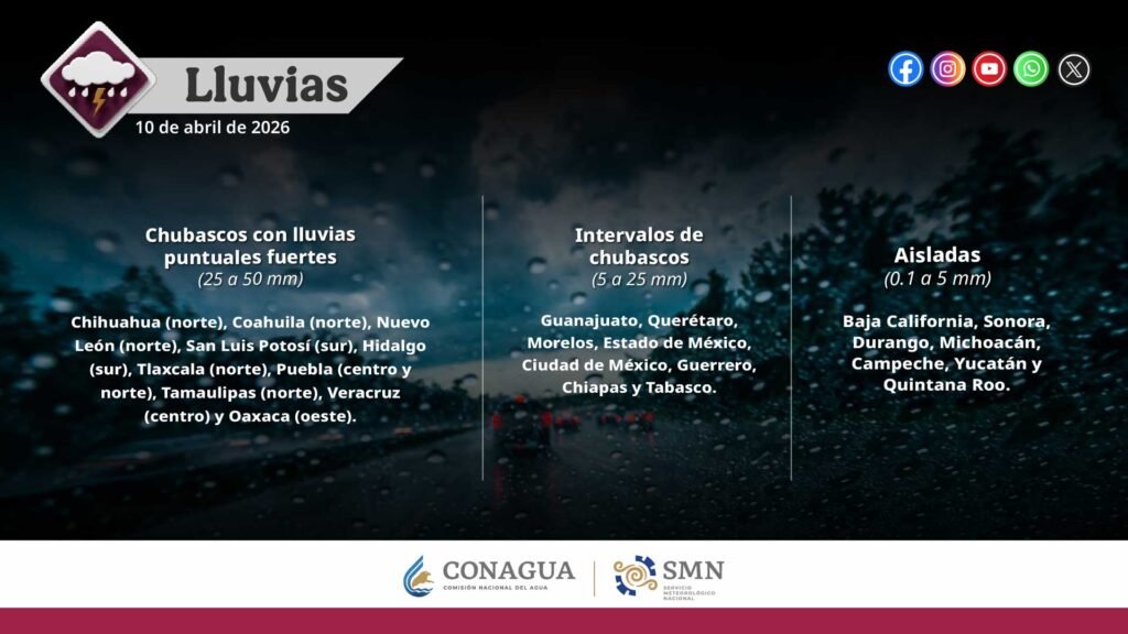 Pronóstico de lluvias para hoy 10 de abril de 2026: