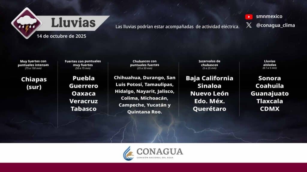 Pronóstico de lluvias para hoy 14 de octubre de 2025: