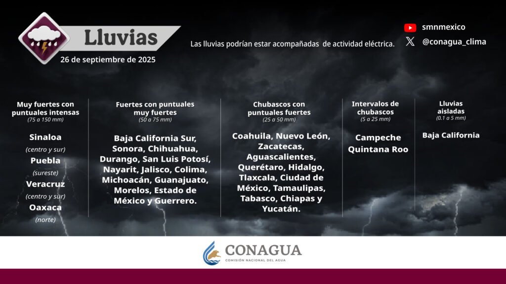 Pronóstico de lluvias para hoy 26 de septiembre de 2025:
