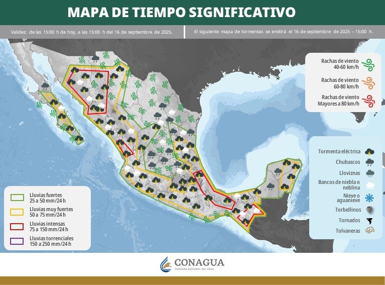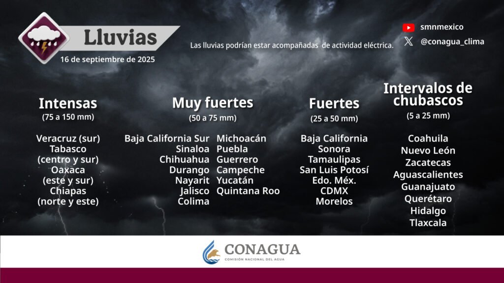 Pronóstico de lluvias para hoy 16 de septiembre de 2025: