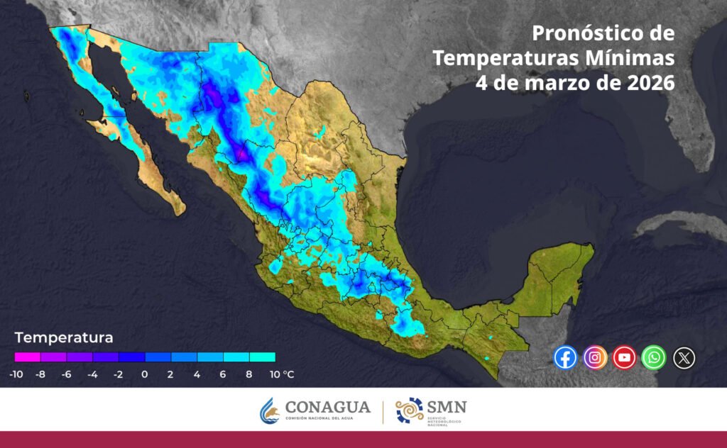 Pronóstico de temperaturas mínimas para hoy 05 de marzo de 2026: