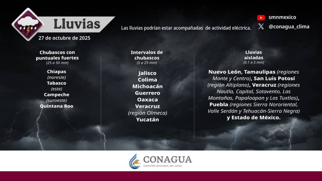 Pronóstico de lluvias para hoy 27 de octubre de 2025: