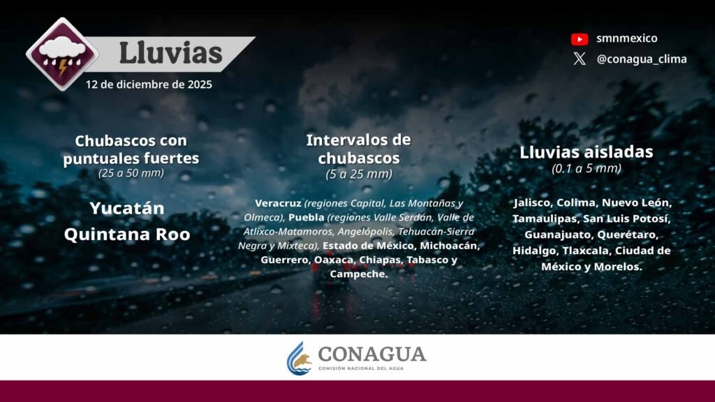 Pronóstico de lluvias para hoy 12 de diciembre de 2025: