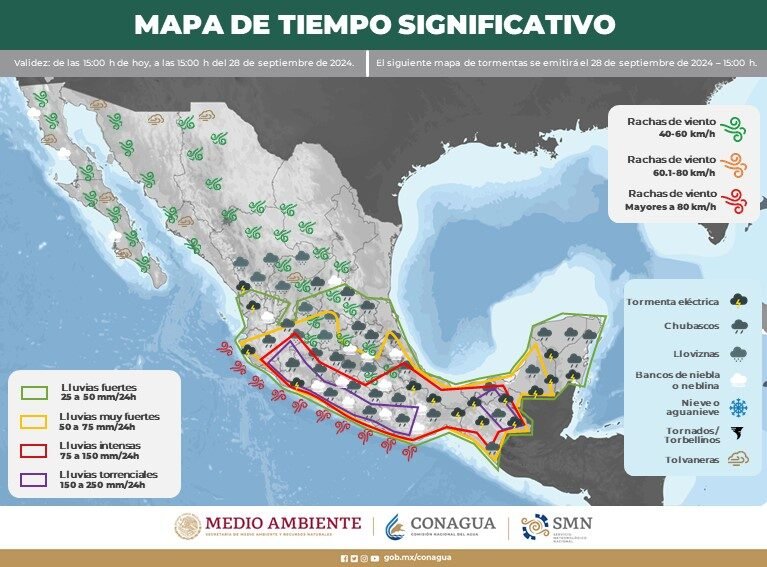 Pronóstico de lluvias para hoy 28 de septiembre de 2024: