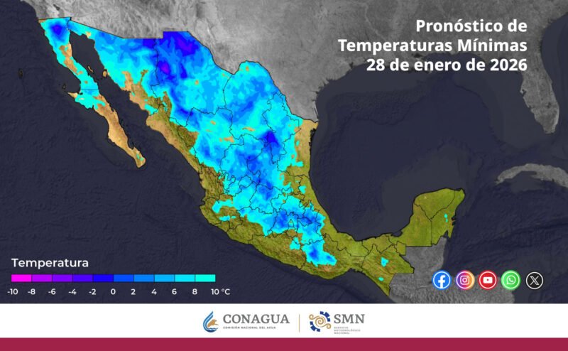 Pronóstico de temperaturas mínimas para hoy 28 de enero de 2026: