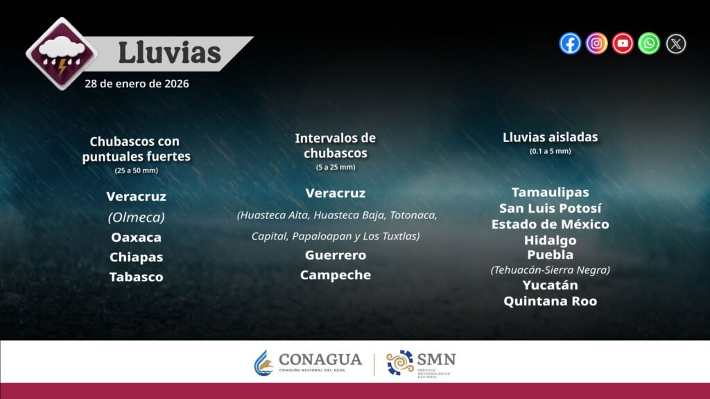 Pronóstico de lluvias para hoy 28 de enero de 2026: