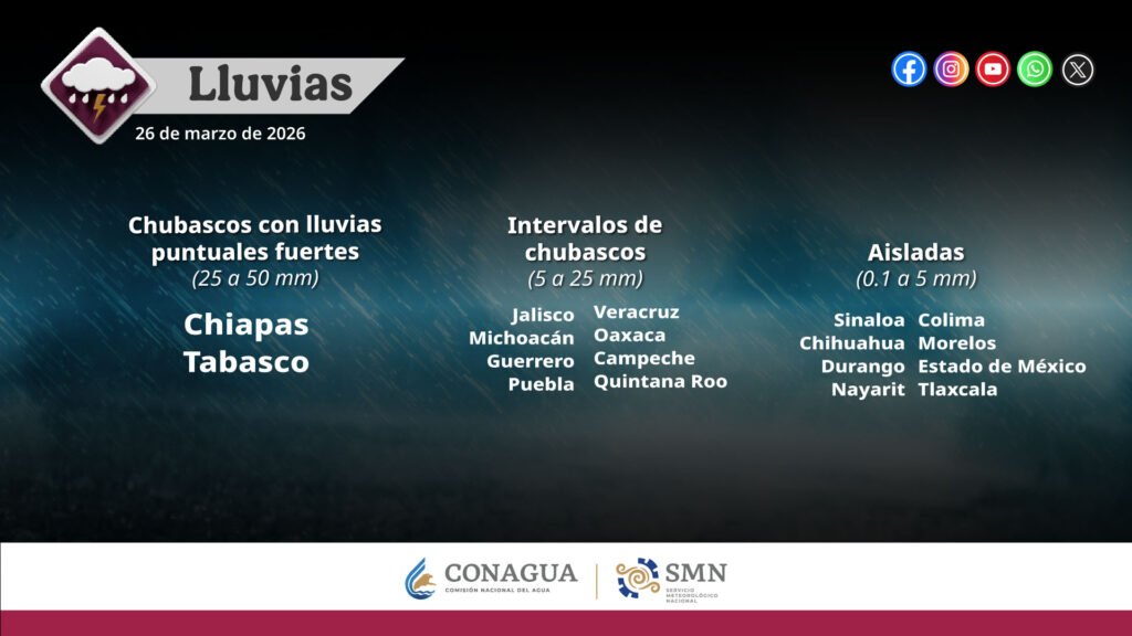 Pronóstico de lluvias para hoy 27 de marzo de 2026: