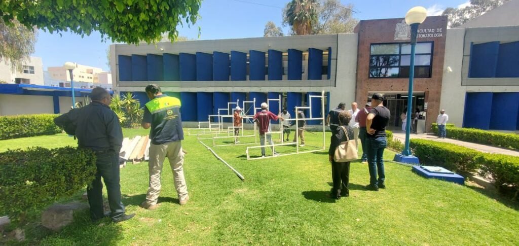 Se registró un accidente esta mañana en la Facultad de Estomatología, se informa que el incidente fue provocado debido al colapso de la estructura de gradas durante la toma de una fotografía.