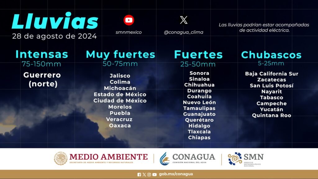 Pronóstico de lluvias para hoy 28 de agosto de 2024: