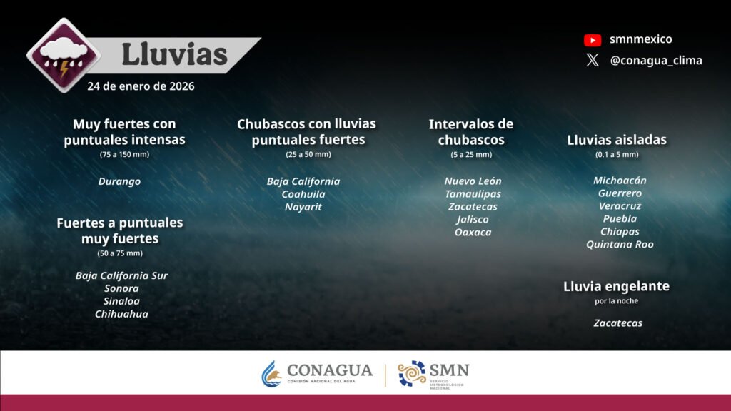 Pronóstico de lluvias para hoy 24 de enero de 2026: