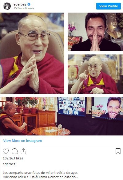 Con un simple “hola” fue como su Santidad el Dalai Lama comenzó su encuentro con el actor y comediante Eugenio Derbez, quien pese a su evidente nerviosismo, abordó diversos temas con este líder religioso, como la salud mental, el amor e incluso el COVID-19.