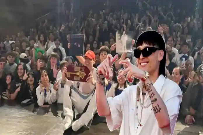 Peso Pluma también entregó algunos vinilos a los asistentes, lo que generó momentos de interacción directa. Estas acciones fueron bien recibidas por los estudiantes y seguidores presentes en el lugar.