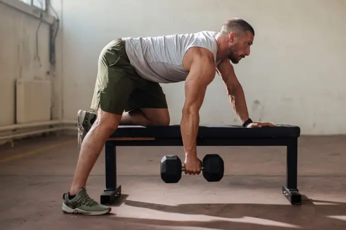 Remo inclinado sobre banco para mejorar la técnica