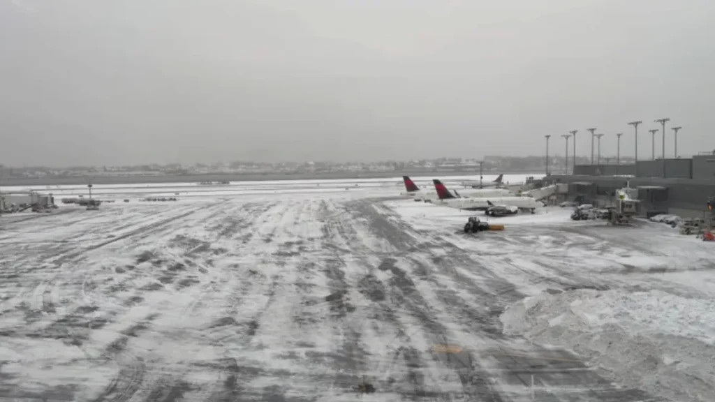 En el aeropuerto LaGuardia el sábado, los sistemas de información de vuelos estaban llenos de avisos rojos de cancelación en la mañana, mientras que las plataformas exteriores estaban cubiertas de blanco, con pocos aviones a la vista entre la nieve. Sin embargo, los viajeros parecían pacientes y, aparentemente, tomaban los retrasos y cancelaciones con calma.