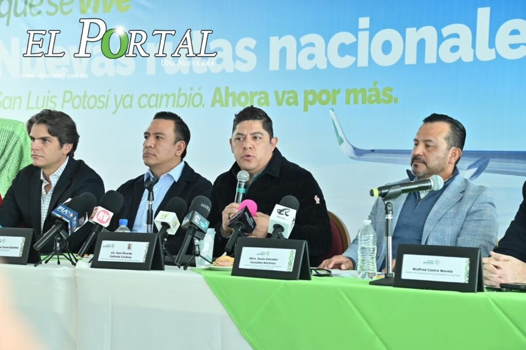 San Luis Potosí, S.L.P. (El Portal). – El Gobernador del Estado, Ricardo Gallardo Cardona, anunció la apertura de un nuevo vuelo de San Luis Potosí a la Ciudad de México y otro a Monterrey, los cuales serán operados por la aerolínea Viva Aerobús y ofrecerán tarifas de bajo costo.