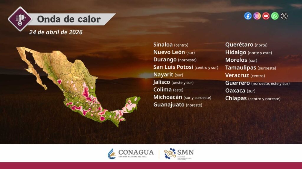 Pronóstico de temperaturas máximas para hoy 24 de abril de 2026: