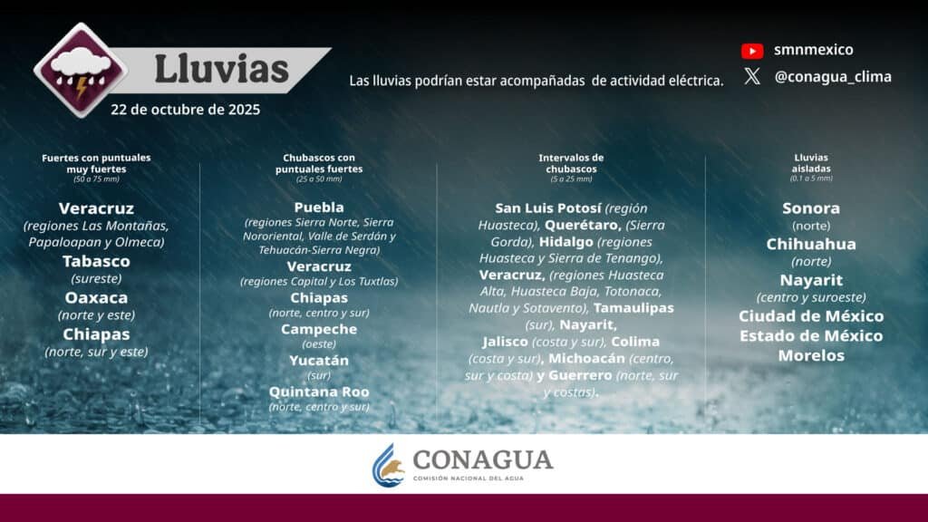 Pronóstico de lluvias para hoy 23 de octubre de 2025: