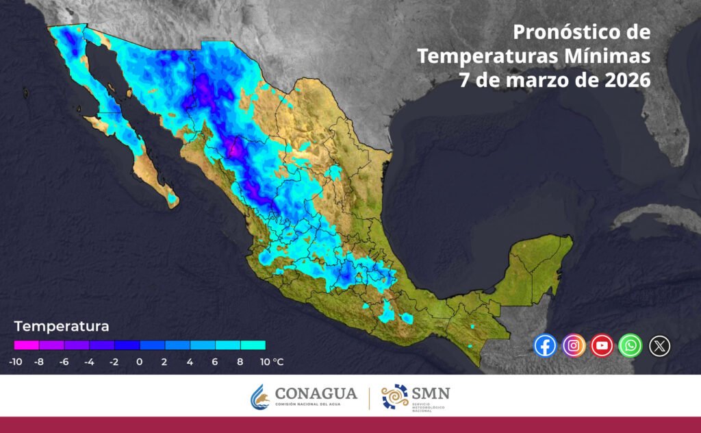 Pronóstico de temperaturas mínimas para hoy 07 de marzo de 2026: