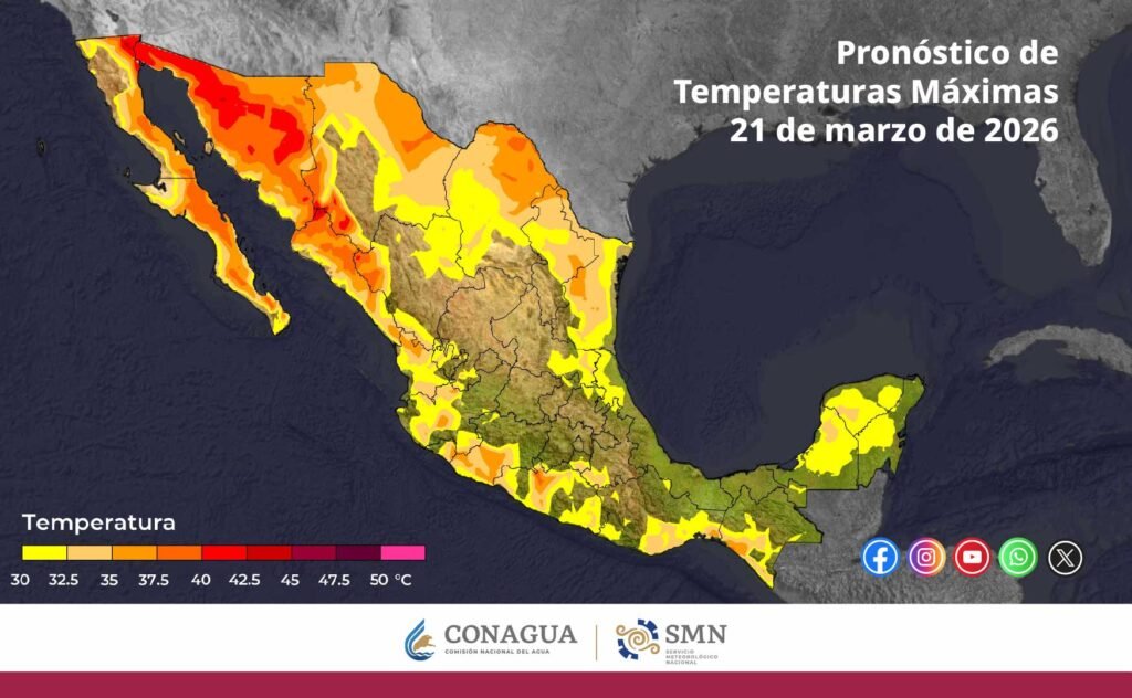 Pronóstico de temperaturas máximas para hoy 21 de marzo de 2026:
