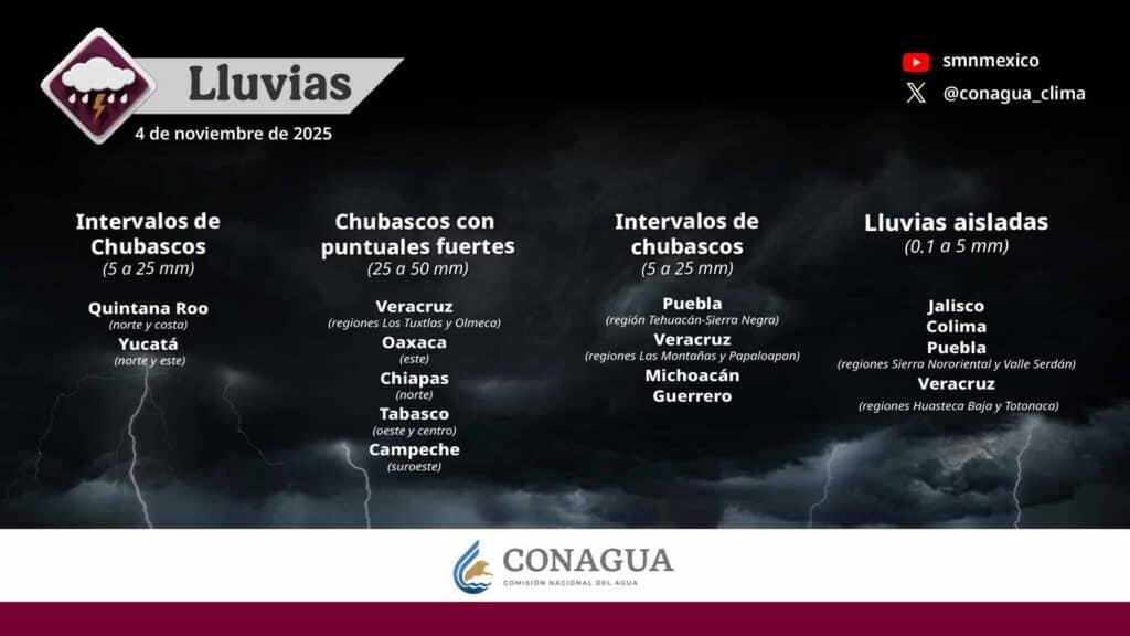 Pronóstico de lluvias para hoy 04 de noviembre de 2025: