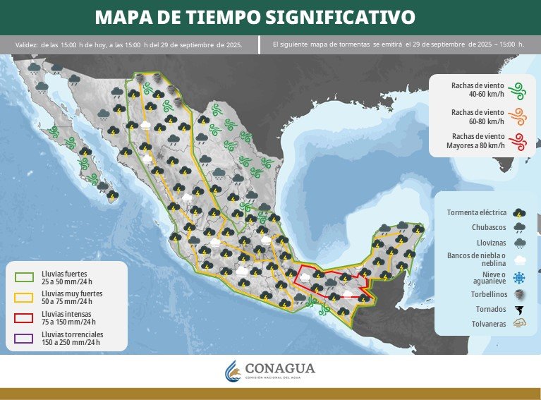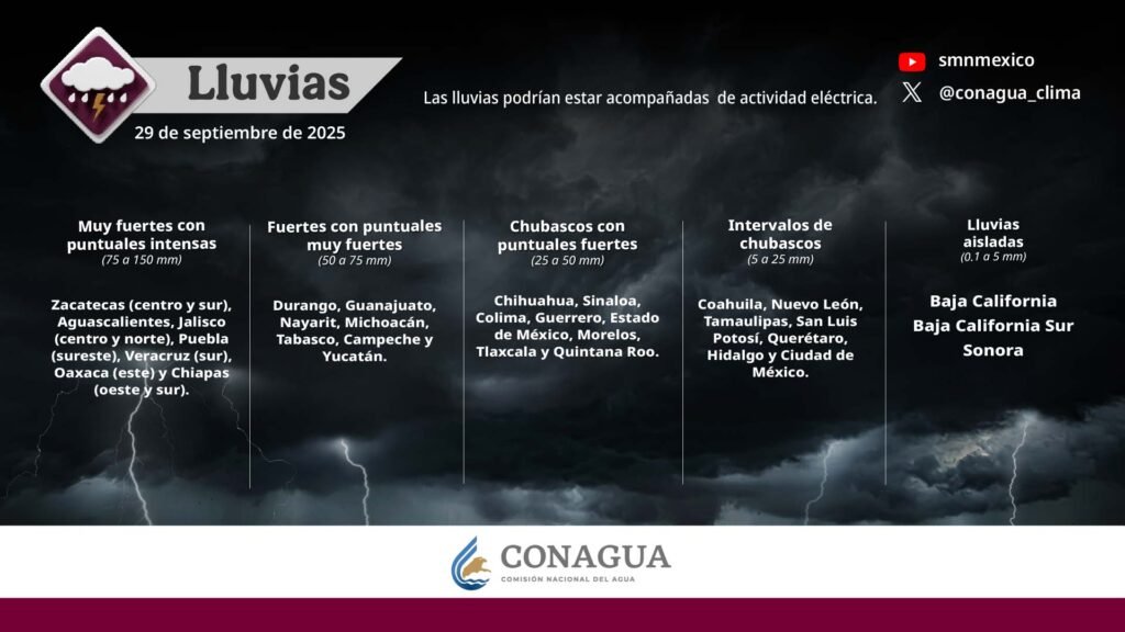 Pronóstico de lluvias para hoy 29 de septiembre de 2025: