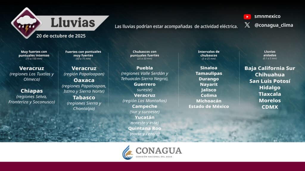 Pronóstico de lluvias para hoy 20 de octubre de 2025: